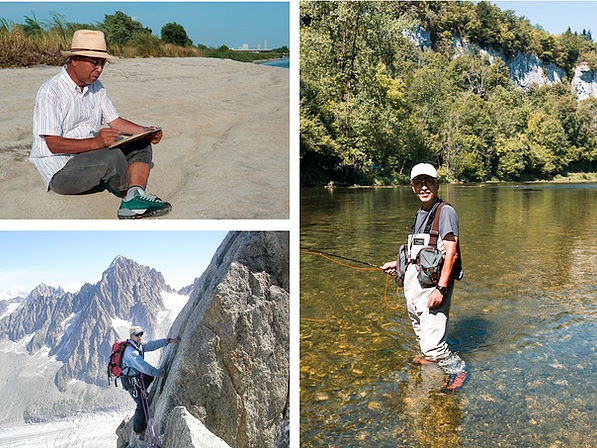 1943年、東京生まれ。上智大学フランス語科卒。フランス大使館勤務後、イベントプロデュース会社や日本で初めてのプロジェクションマッピングの会社を経営したり、日本自転車競技連盟の国際委員として世界選手権の招致や、中野浩一の十連勝に貢献したり等さんざん回り道をしたあげく、現在憧れの貧乏絵描きに。早くから登山とフライフィッシングを愛好。日本初の専門誌”フライフィッシング・ジャーナルの創立同人の一人。月刊Fly Fisher誌には30年近くの連載をもつ。日本山岳画協会、Japan Fly Fishers、Fario Friends of Tokyo、日本登攀クラブ会員。